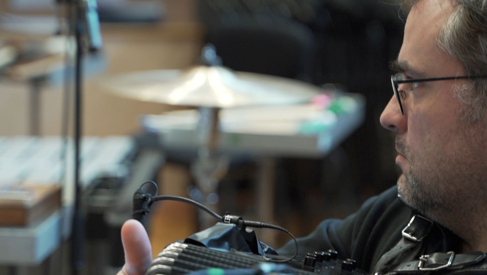 Musical theatre for one actor, two percussionists, one accordionist and motion capture device (electronics)