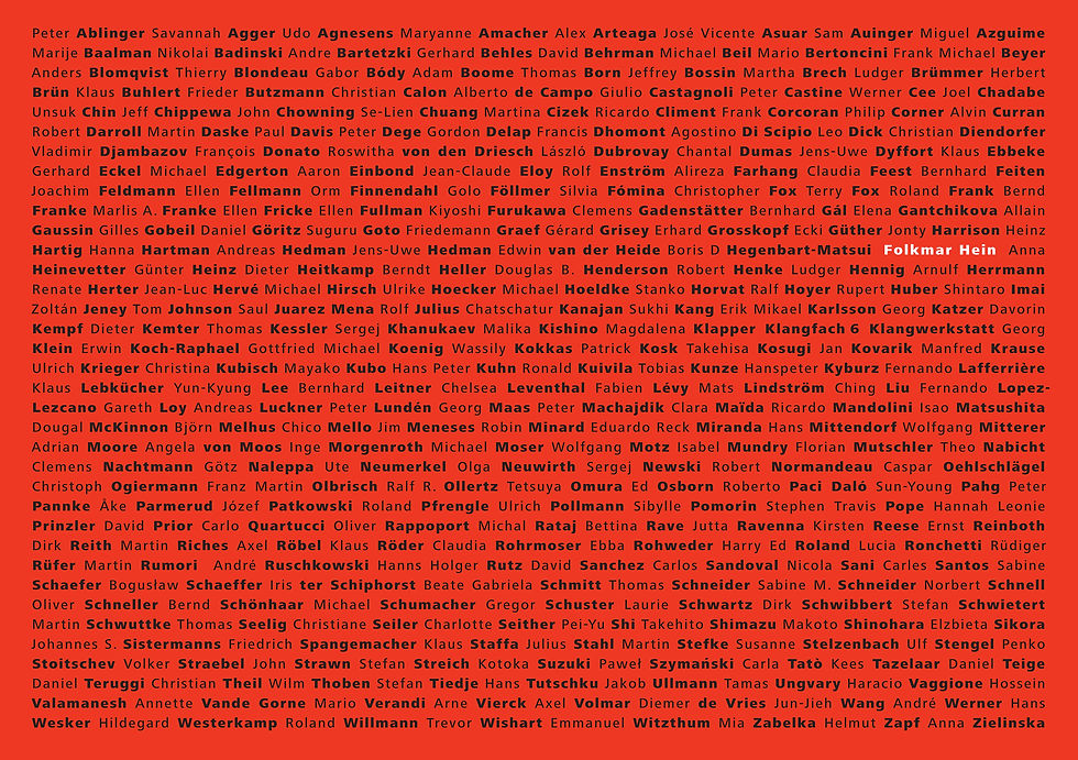 This piece has been is a commission of DAAD for the 65th birthday of Folkmar Hein, the co-fonder of Festival Inventionen of Berlin.